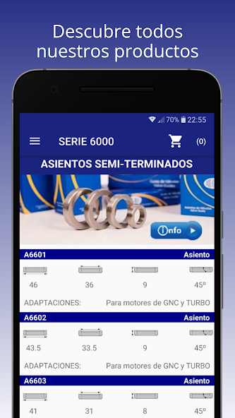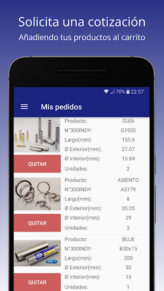 El projecto consistió en un catálogo de todos los productos que la empresa dispone para su venta. Contó con una pantalla de inicio intuitiva y bonita, con los accesos a los diferentes apartados. Se incorporó la posibilidad de buscar cualquier producto en base a su dimensión, marca, tamaño, entre otras. Finalmente, el usuario tenía la posibilidad de realizar una reserva de productos a través de un carrito de compras.